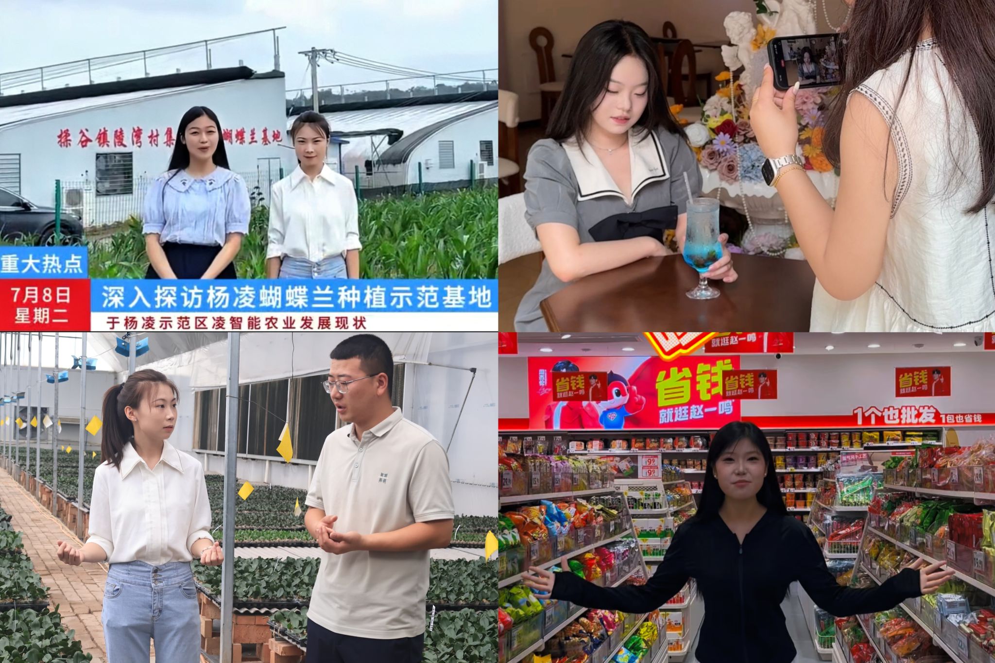 本次实习为学生们提供了全方位的实践锻炼平台,从探索农业科技传播的叙事方法,到实现商业短视频的创意落地;从打磨演播室出镜的语言表达,到构建微短剧的戏剧冲突……同学们相继创作出《探访蝴蝶兰种植基地》《高温下的坚守:杨凌工地建设者烈日坚守不停工》《杨凌:“社区带娃”有温度 暑期托管解民忧》《百元大作战:在赵一鸣,花钱比省钱更难?!》等实践作品。他们以实践为笔,书写着成长的篇章,为未来深耕传播领域积蓄力量。