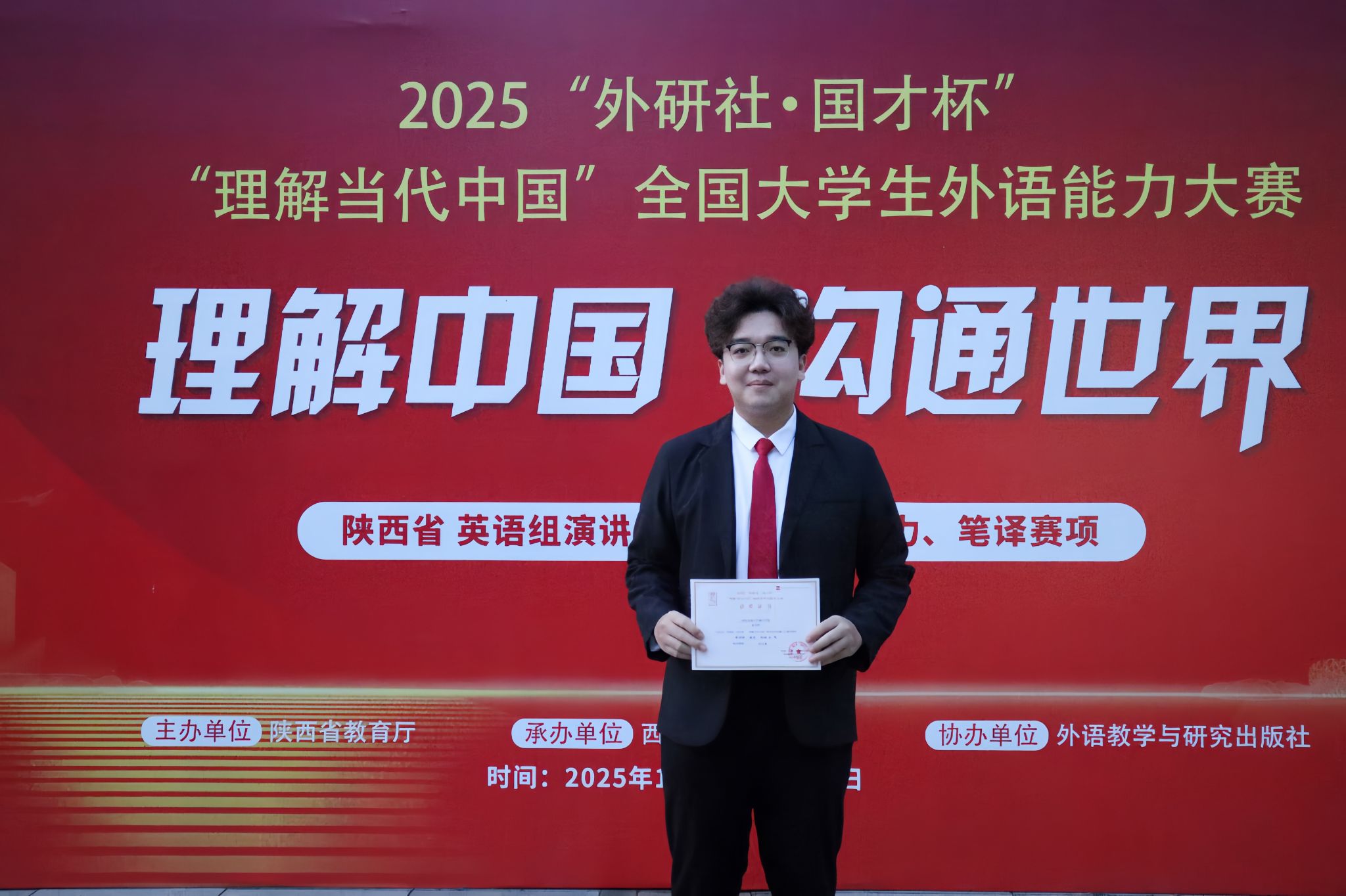 11月2日,2025年“外研社·国才杯”“理解当代中国”陕西省大学生外语能力大赛在西安建筑科技大学雁塔校区落幕。我校学子共斩获陕西省复赛金奖1项、银奖1项、铜奖11项。其中,软件专业2303班程伟博同学凭借出色表现荣获省级金奖,成功晋级全国决赛,实现我校在该赛事中的突破。