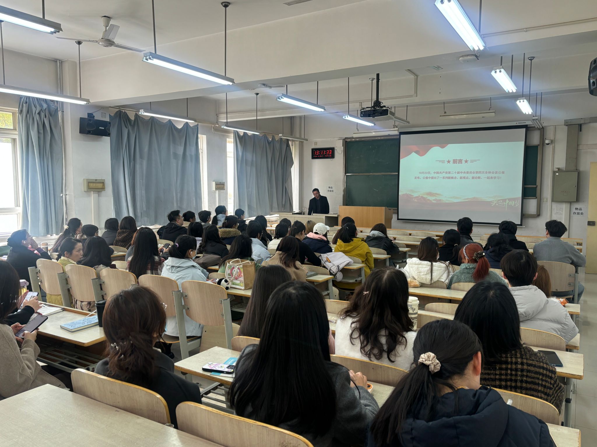 党课气氛庄重热烈,师生党员认真听取、积极思考。大家纷纷表示,通过此次党课学习,对党的二十届四中全会精神有了更全面、深入、准确地理解,对自身在新时代所肩负的责任与使命有了更为清晰、明确的认知。