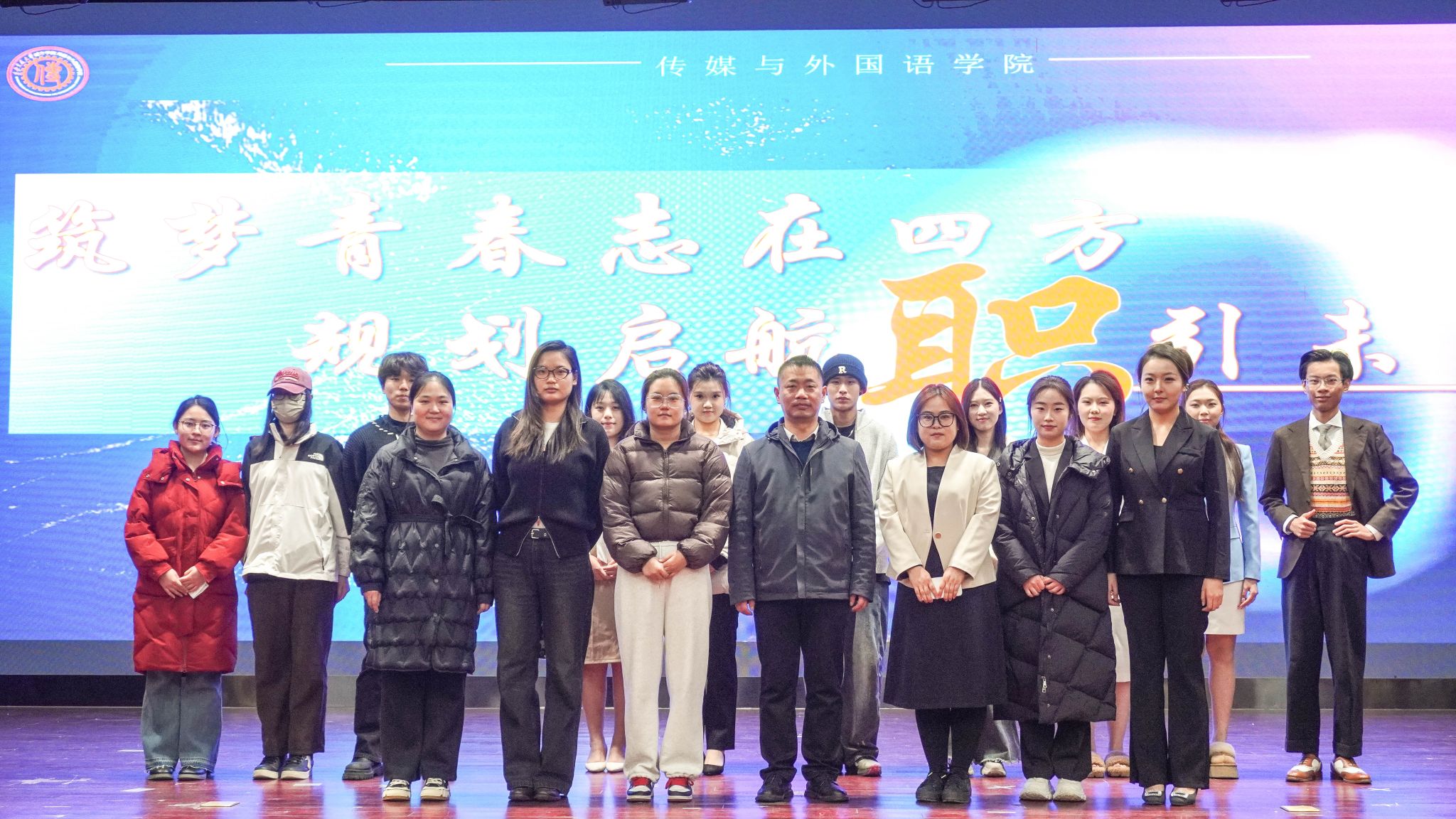 为引导学生树立正确成才观、就业观和择业观,培养综合职业素养与规划能力,12月5日中午,传媒与外国语学院第四届大学生职业规划院级决赛在教二报告厅举办。大赛设成长组与就业组两大赛道,吸引众多学生积极参与。学院院长助理刘敏涛、专项工作负责人杨月、团工委书记韩蓉、辅导员任瑾、李久榕担任评委,学院大一、大二全体学生到场观赛。