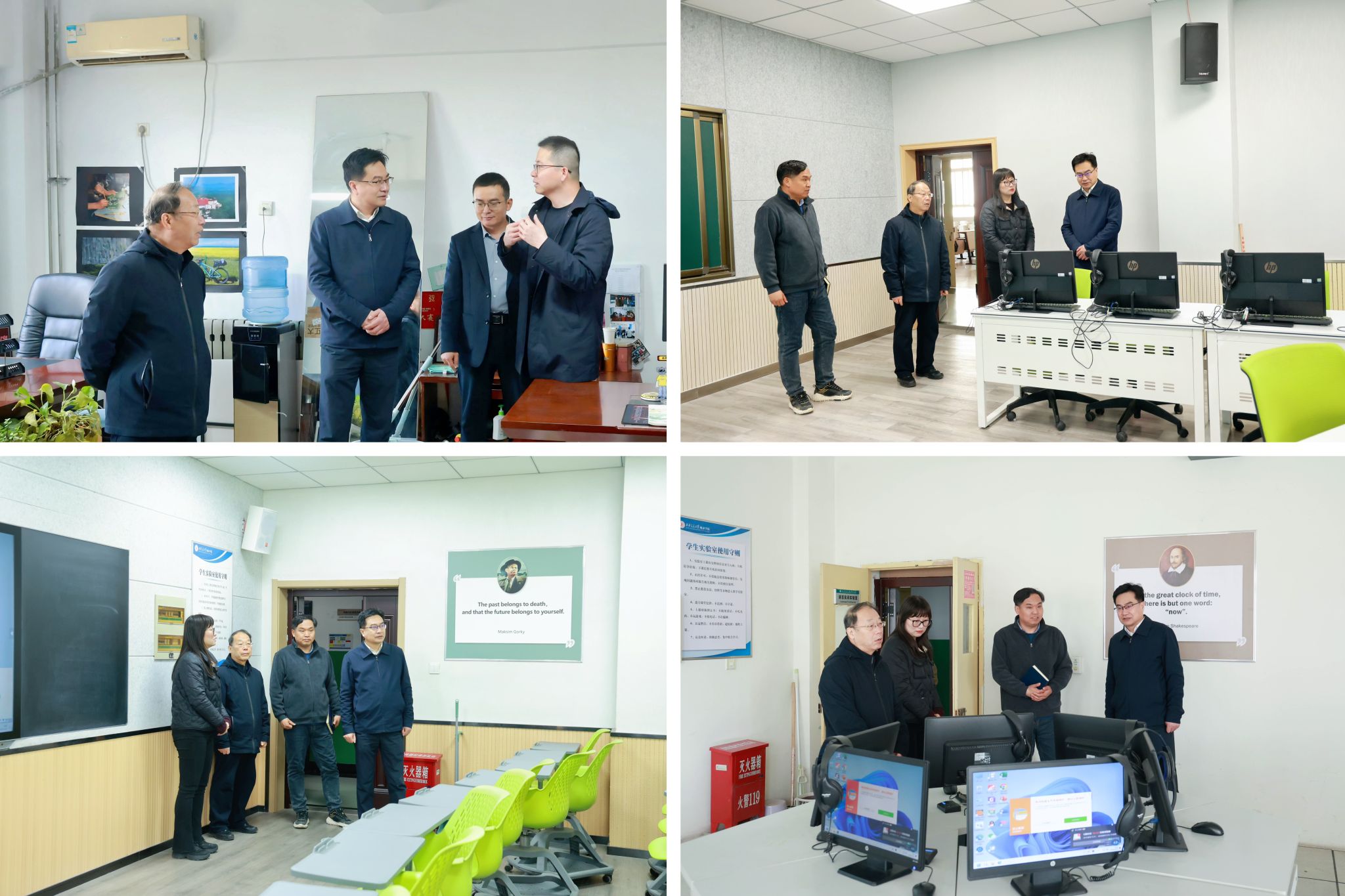 3月20日,王永泉校长带队调研传媒与外国语学院,看望学院教师,并组织召开工作座谈会。校长助理、行政人事部部长姬志国参加调研。